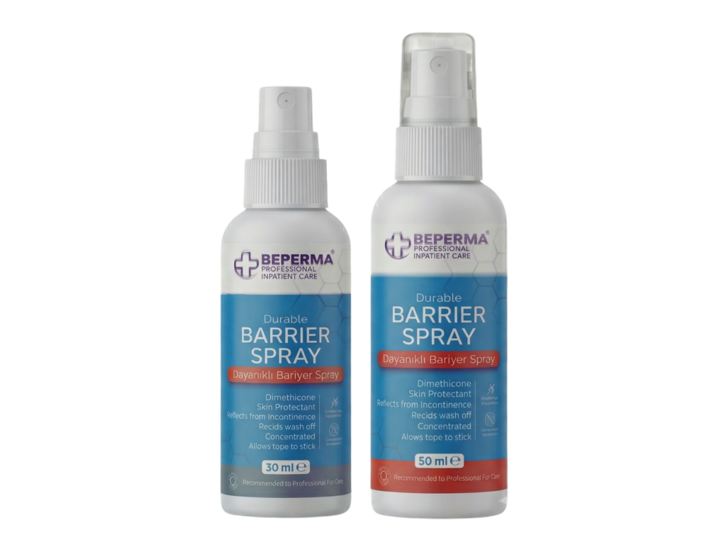 Bariyer Sprey, cildi vücut sıvılarından, yapışkan maddelerden ve sürtünmeden korumak amacıyla tasarlanmış, alkol içermeyen, hızlı kuruyan bir cilt koruyucudur. Cilt üzerinde şeffaf, nefes alabilen ve esnek bir bariyer oluşturur. Hassas ve hasar görmüş ciltlerde yanma yapmaz, tahrişi önler ve cildin doğal nemini korumasına yardımcı olur. 72 saate kadar koruma sağlayarak pansuman değişim sıklığını optimize eder.